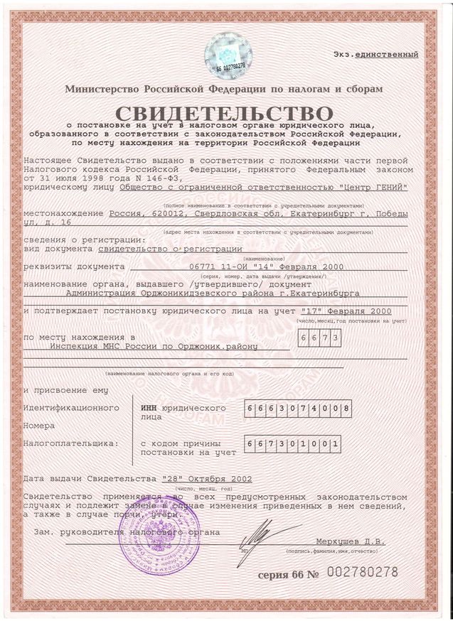 Реквизиты организации ООО «Центр Гений» (ознакомиться)